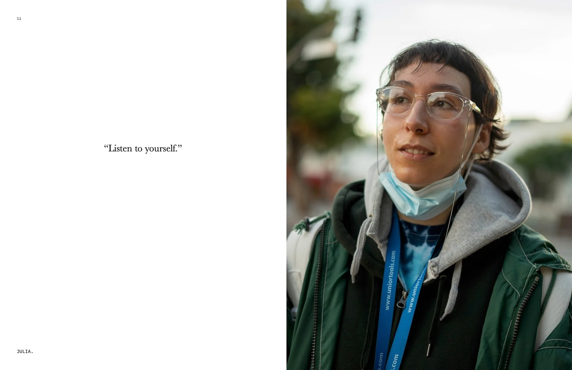 This photobook captures candid portraits and heartfelt conversations with strangers on the streets of LA, exploring the wisdom they’d share with their younger selves—revealing raw emotions, poignant insights, and timeless reflections.
